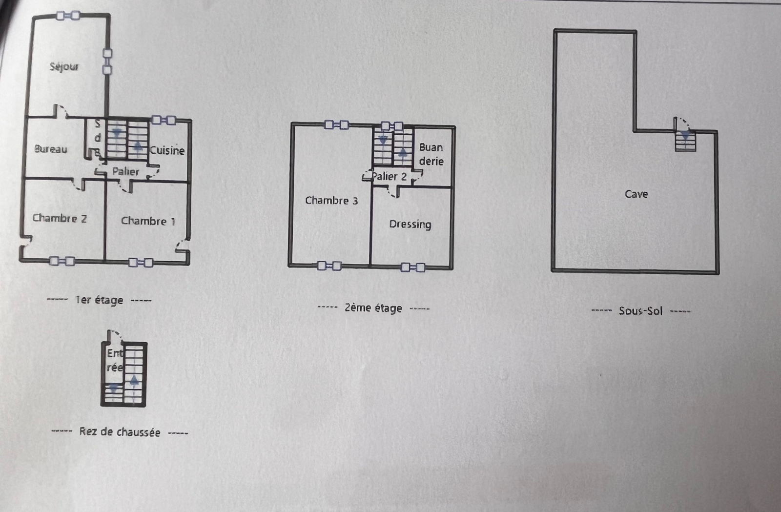Appartement sur deux niveaux composé : Rez-de-chaussée : entrée, cuisine, séjour, bureau, salle d’eau, buanderie À l’étage : palier, chambre, dressing