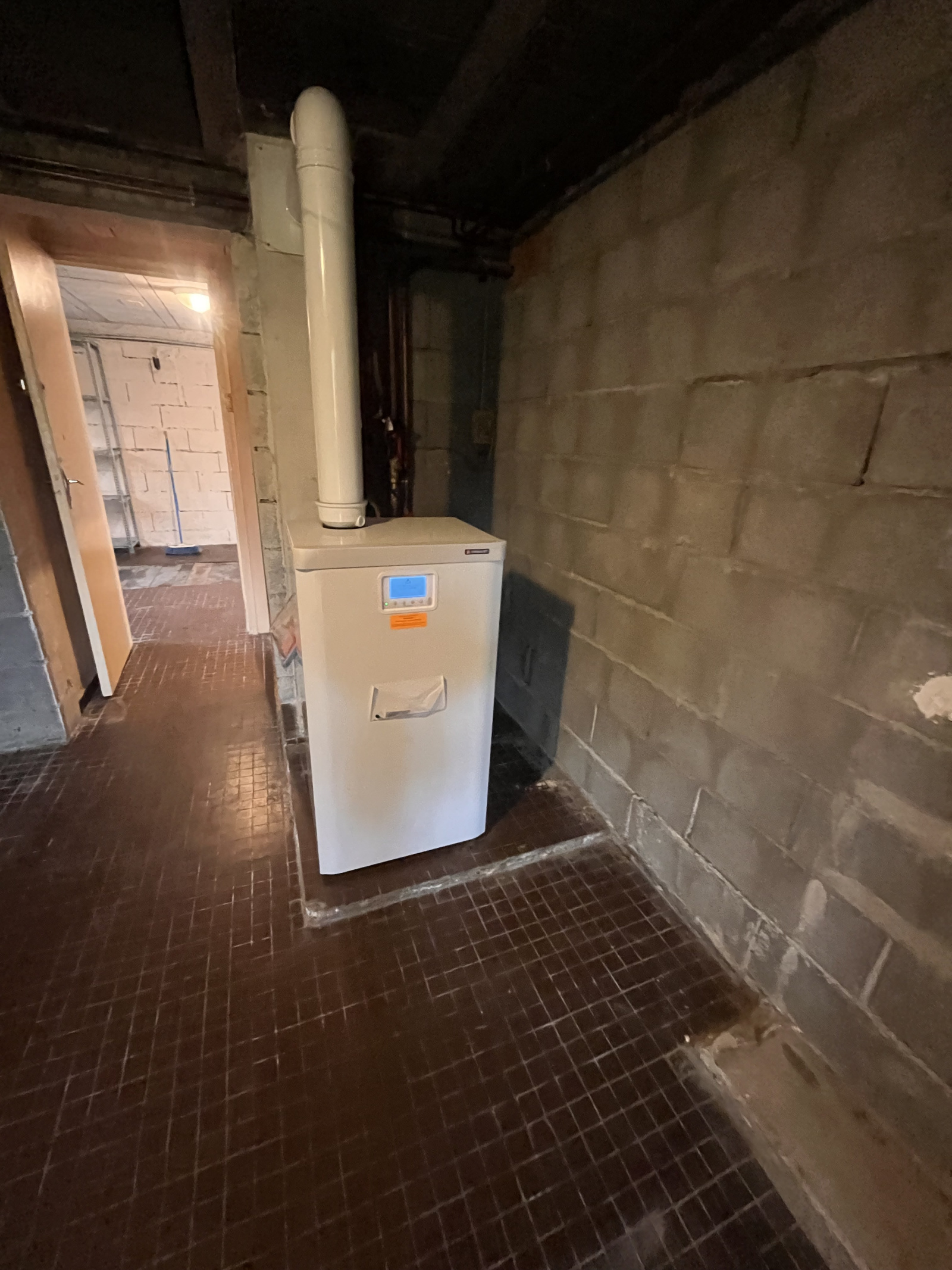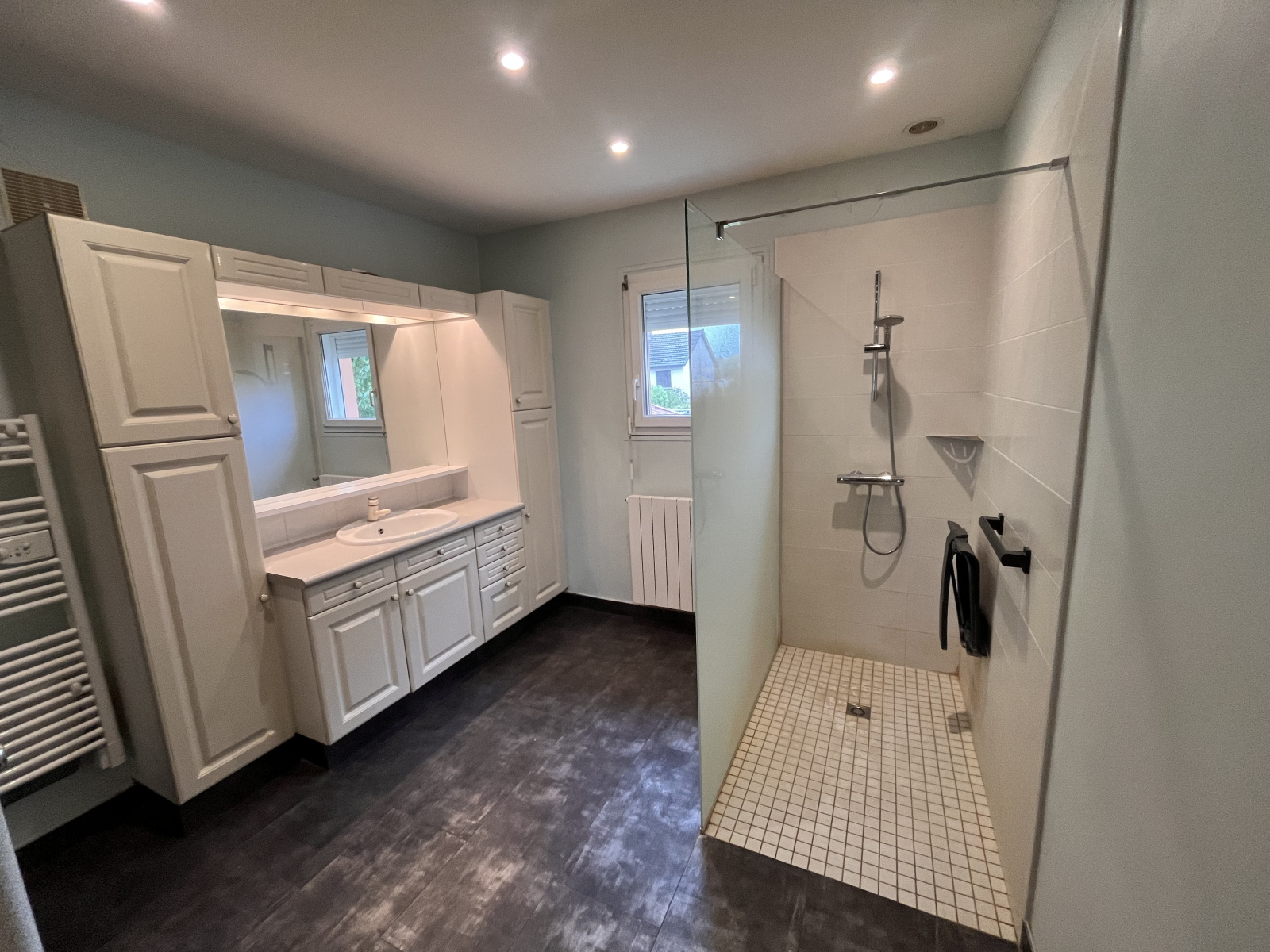 en rez de jardin une pièce chauffée avec fenêtre, chaufferie chaudière neuve, buanderie, WC, Garage