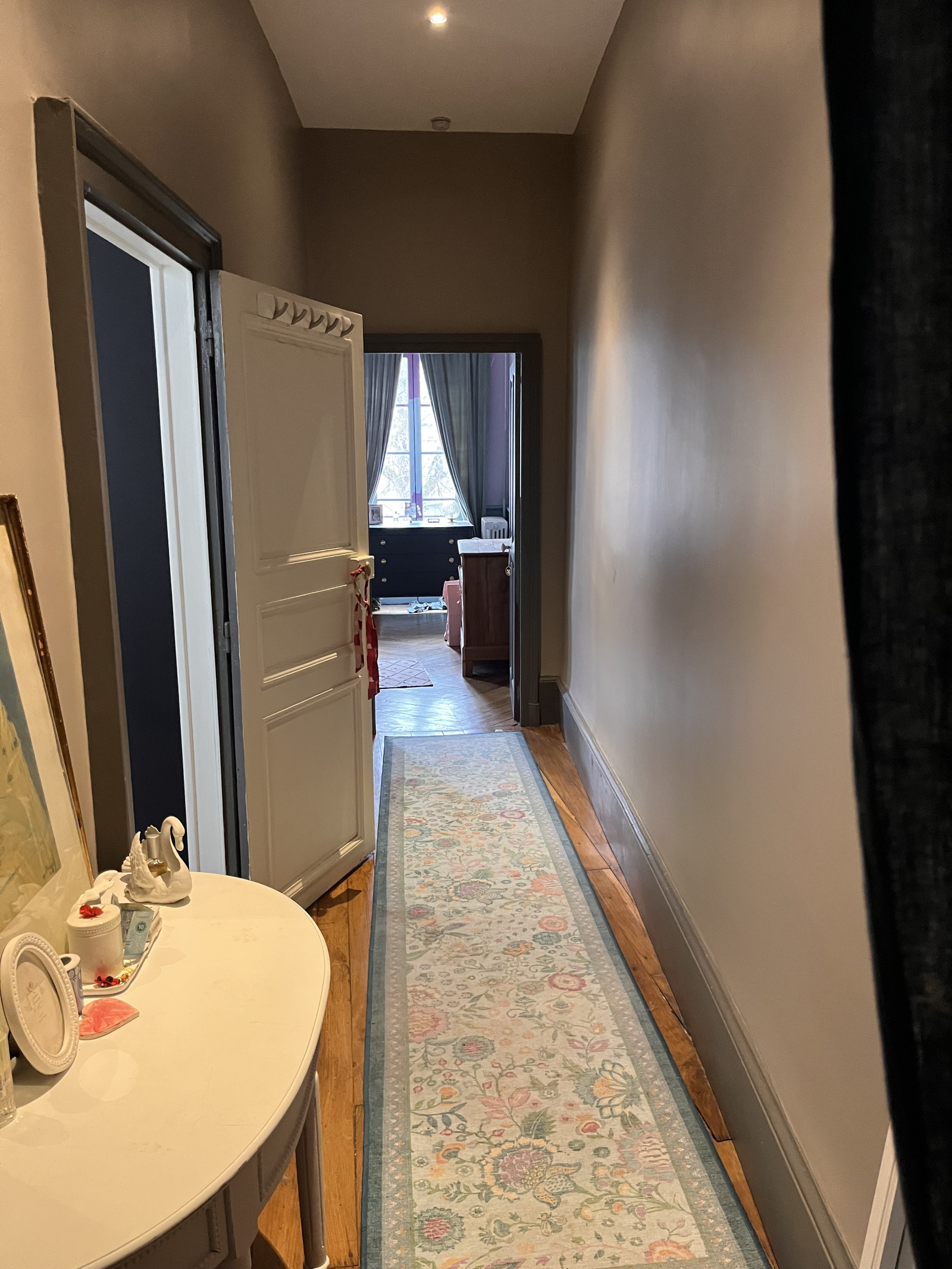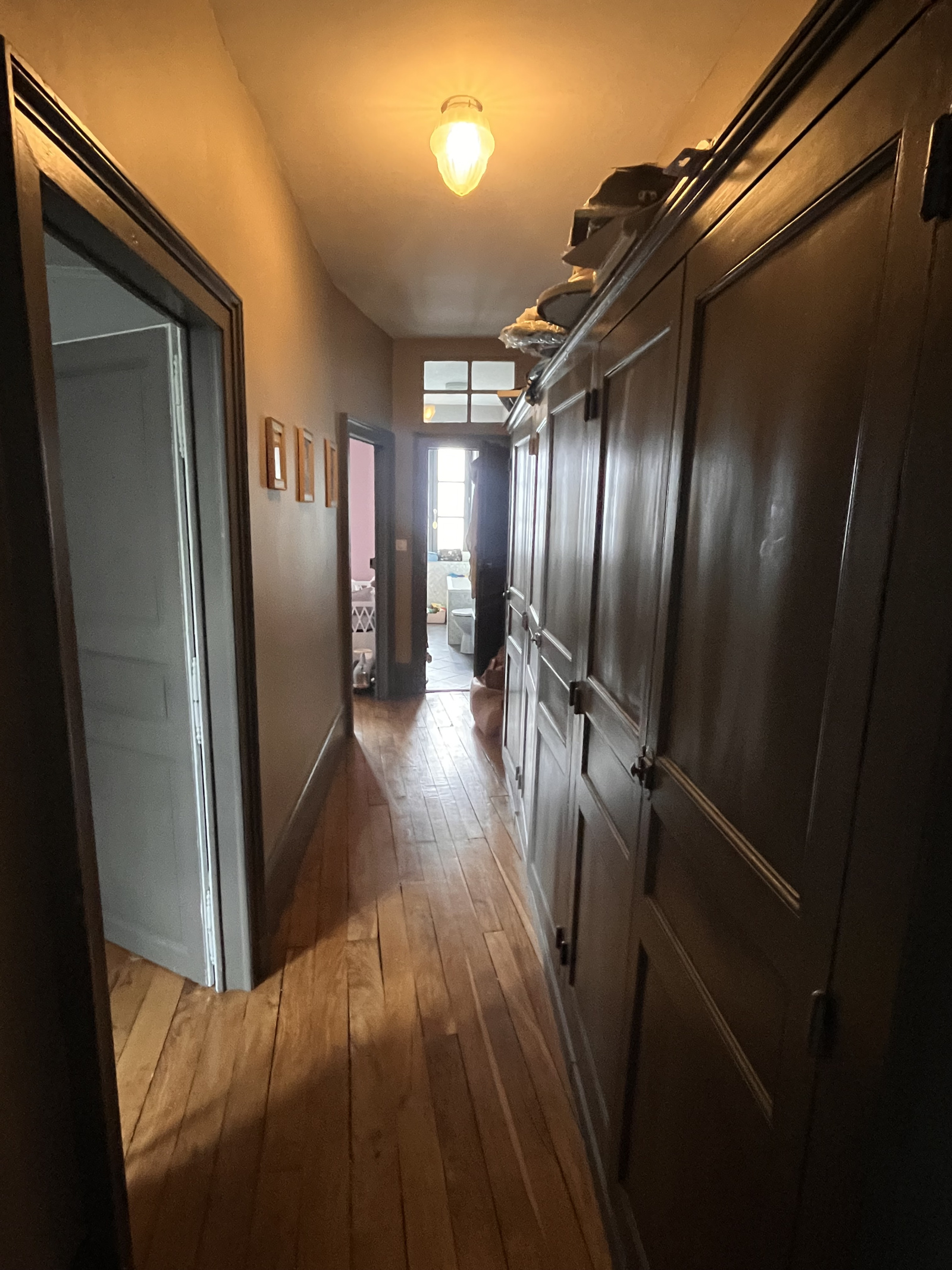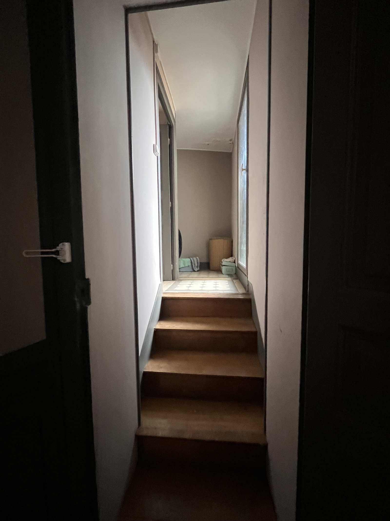 • Un palier avec couloir et espace de rangement.