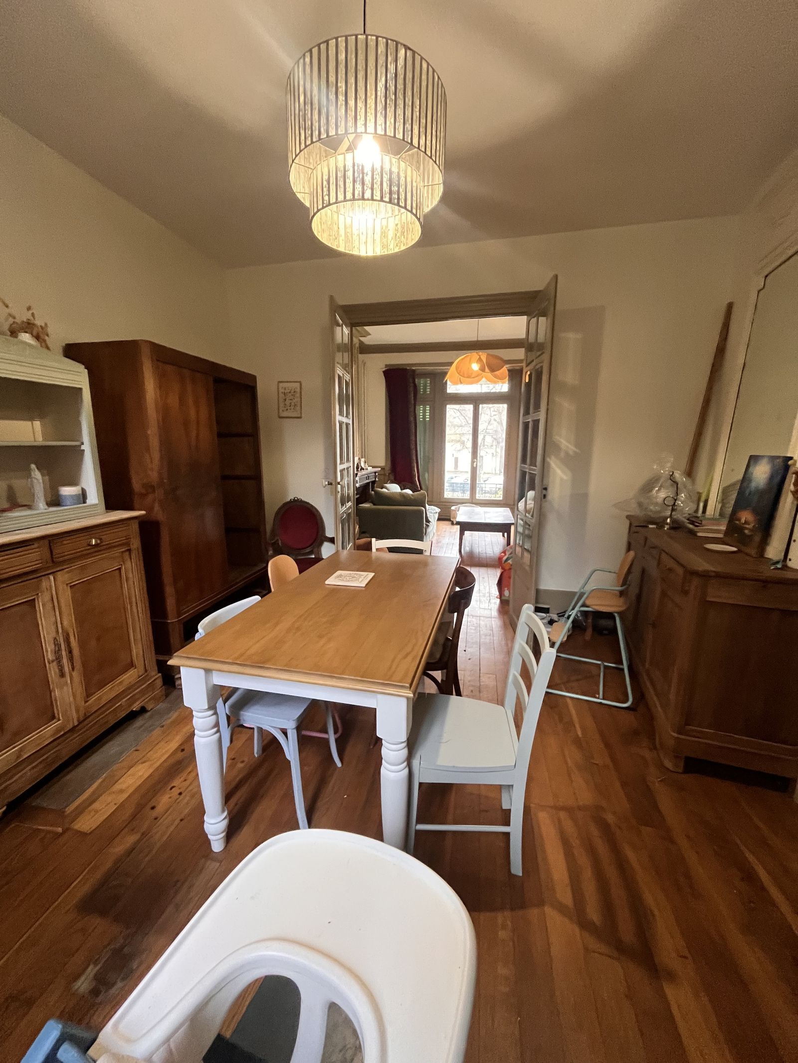• Un salon/salle à manger avec un superbe parquet en chêne massif.