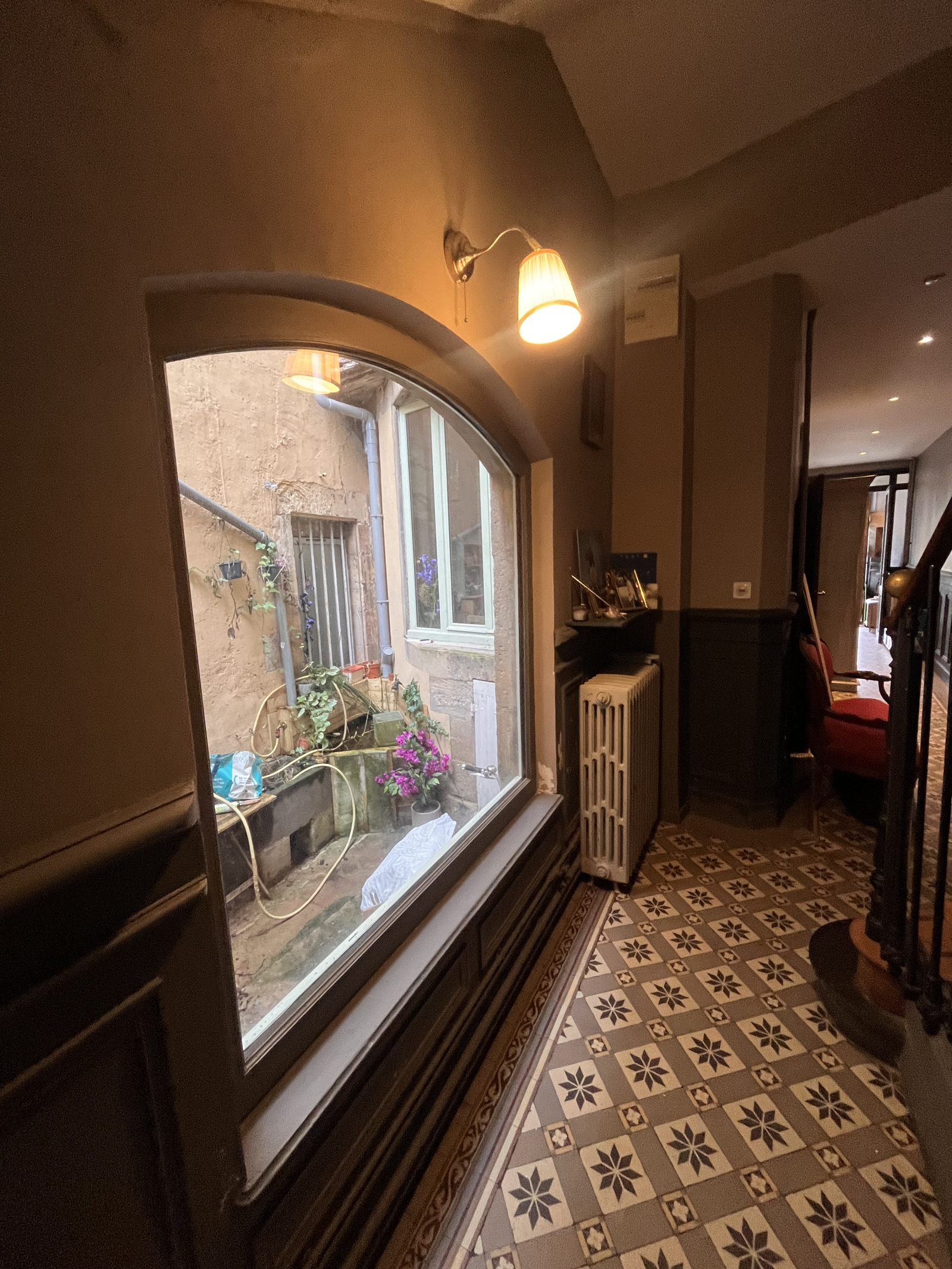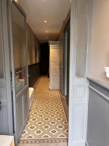 • Un couloir et des dégagements avec sol en carreaux de ciment.