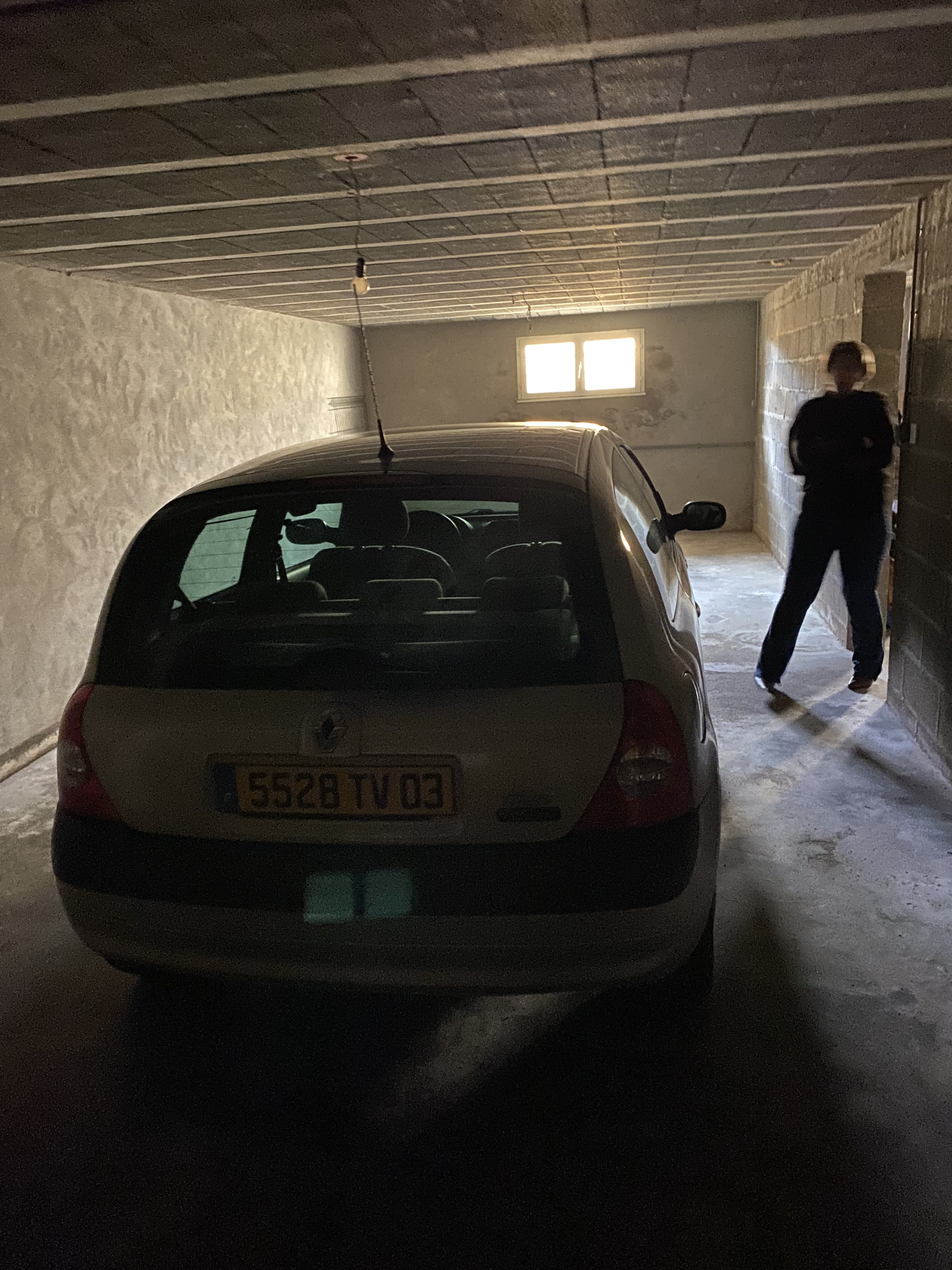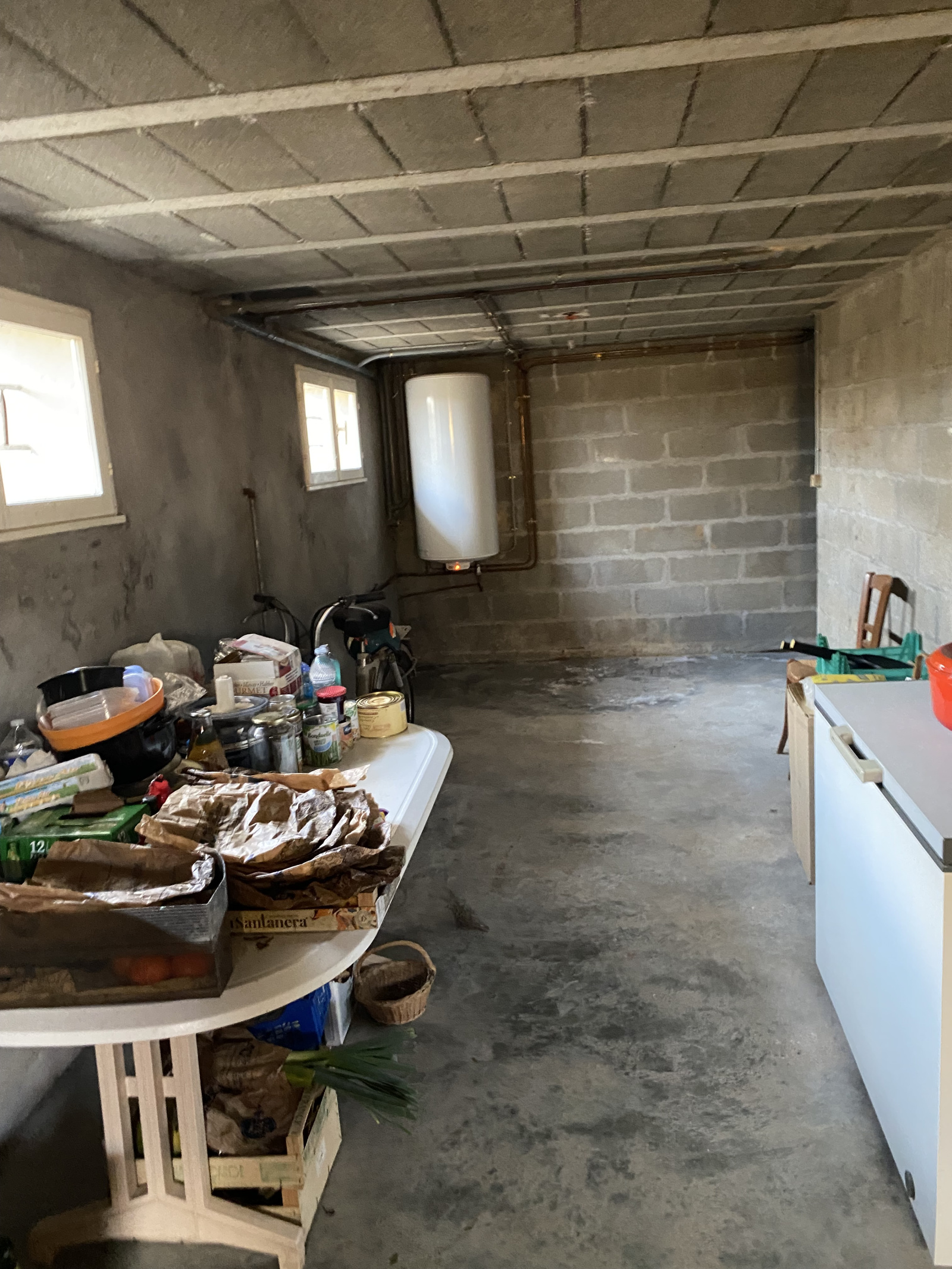 Grand sous-sol garage (porte électrique) avec une cuisine d'été.