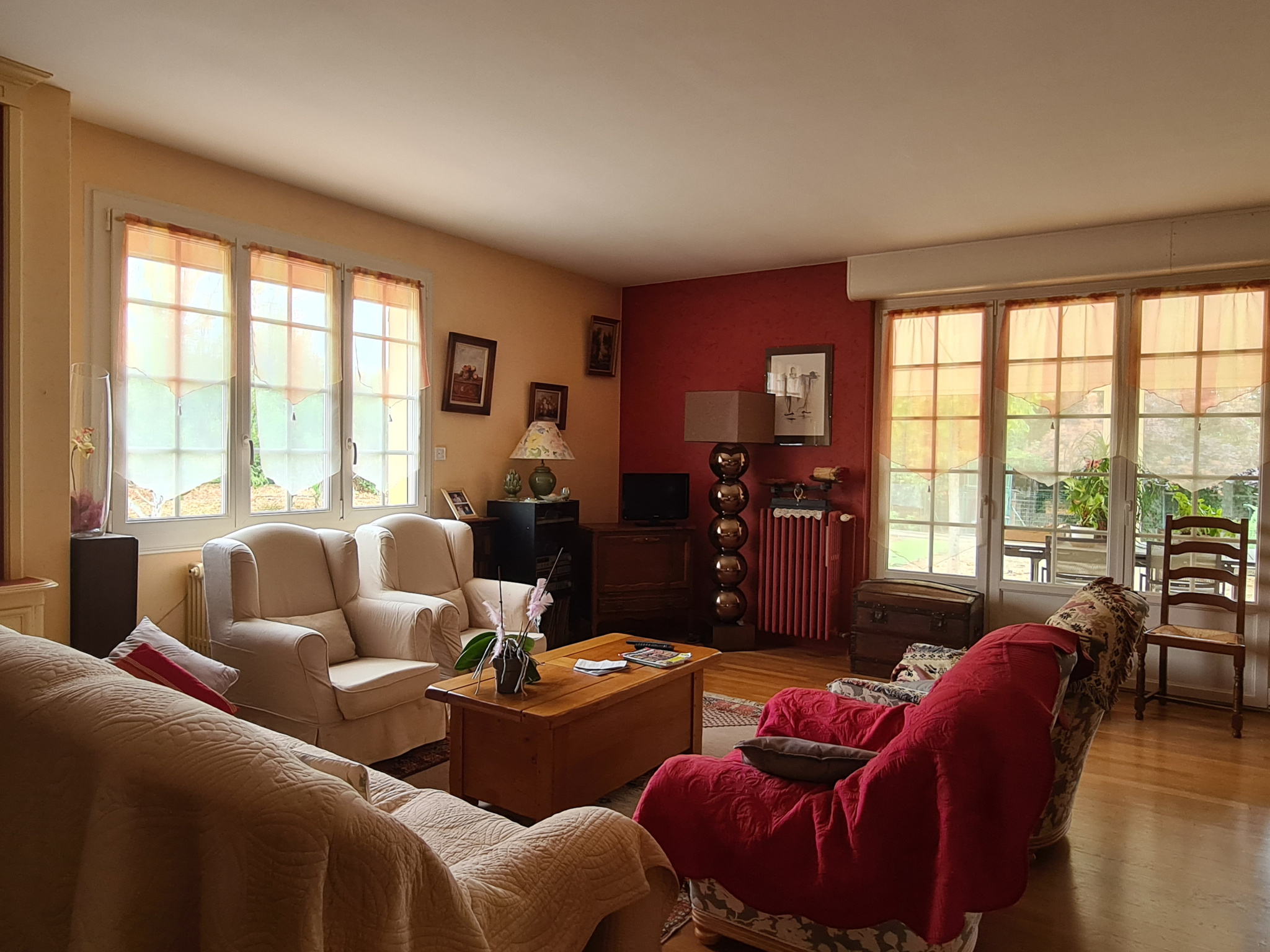 A l’extérieur : Le bien est valorisé par plusieurs dépendances : Un garage de 30 m² avec mezzanine de rangement , un carport attenant, un abri de jardin, un kiosque de jardin bois. Une large allée pavée distribue la maison et les garages