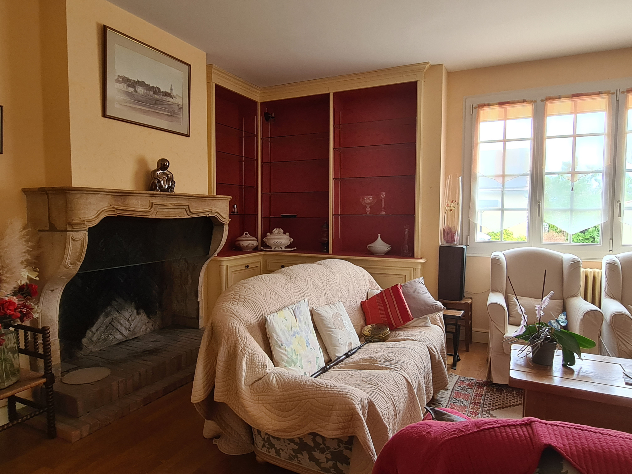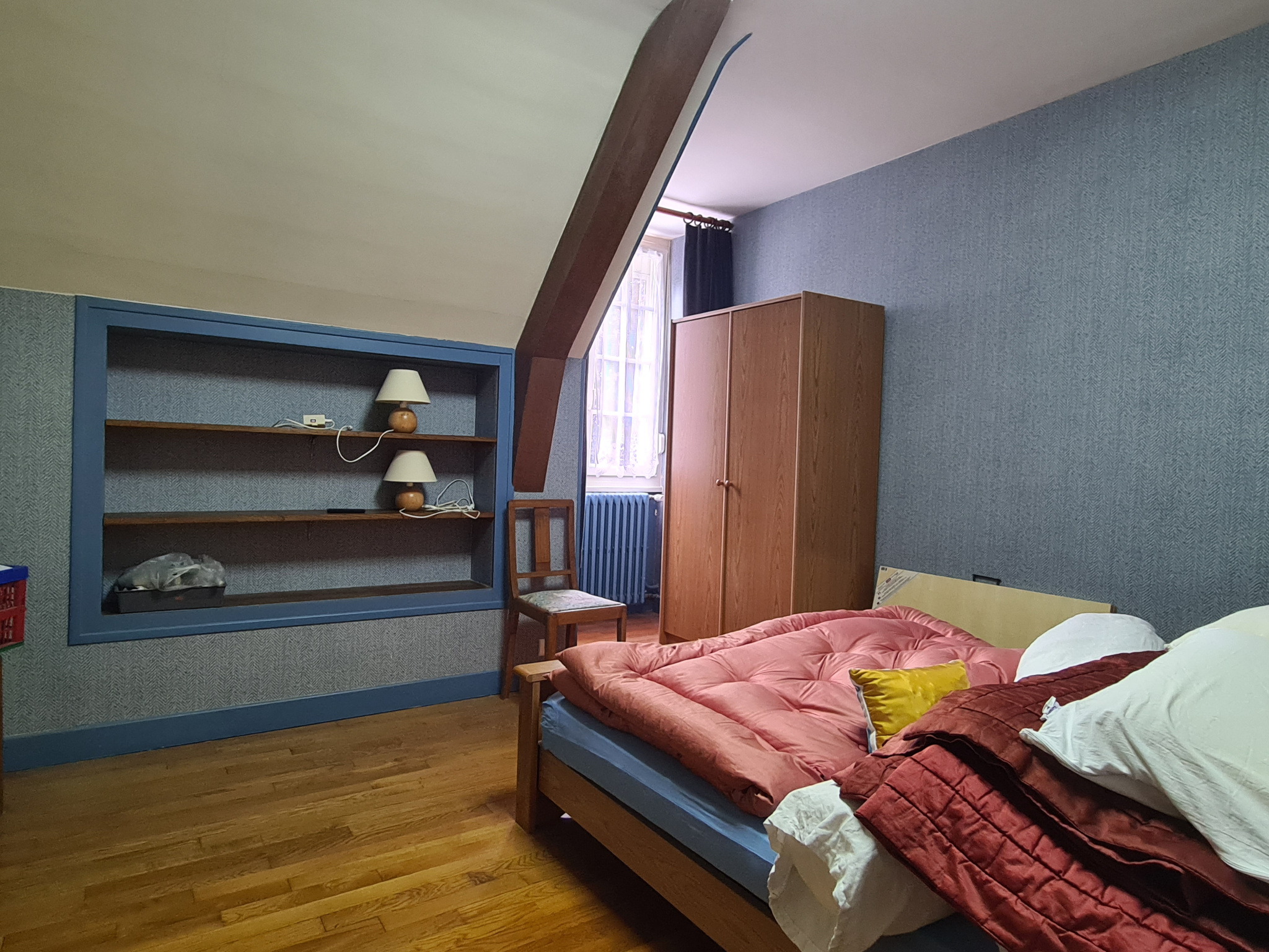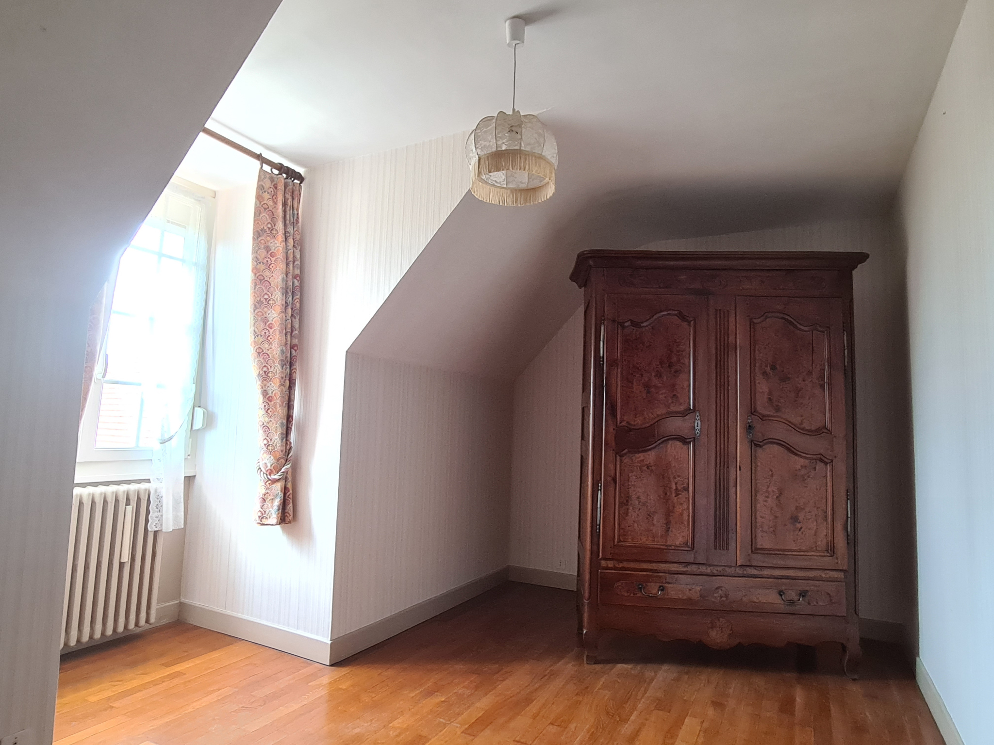 A l’étage : Trois grandes chambres mansardées. Une salle de bain, une salle d’eau, un WC et un dressing. Trois greniers en sous pente.